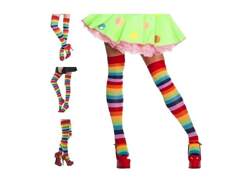 Meia Festa Fantasia Adulto: Colorida Listrada Modelo 7/8 Acima do Joel