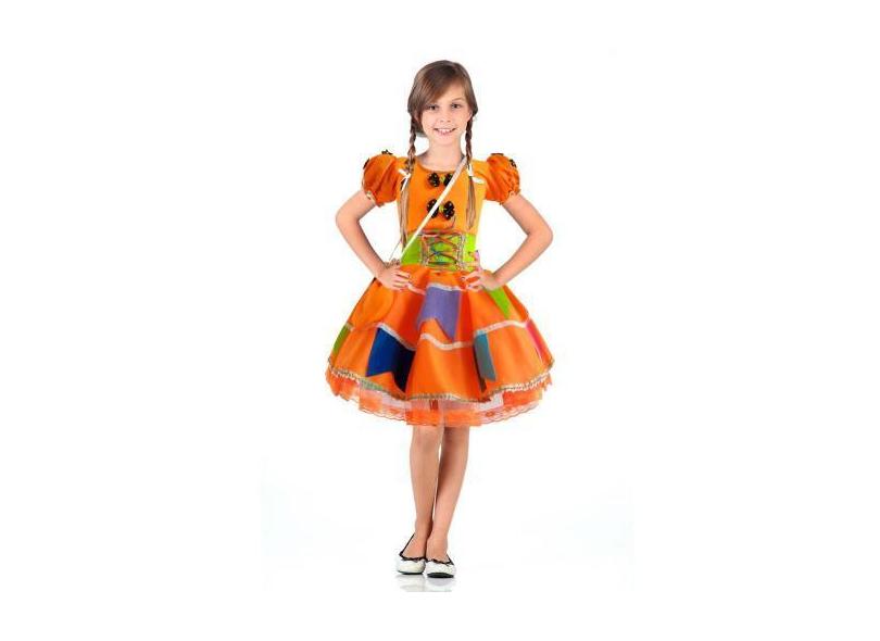 Vestido Caipira Junina Infantil Laranja Neon Luxo Com Bolsa - Fantasia