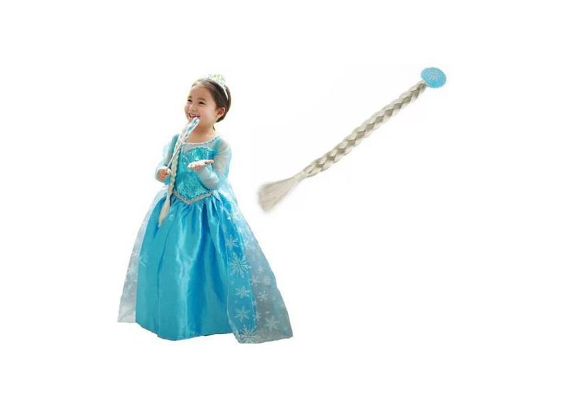 Vestido Fantasia Infantil Elza Frozen com Trança Pronta Entrega - Disn