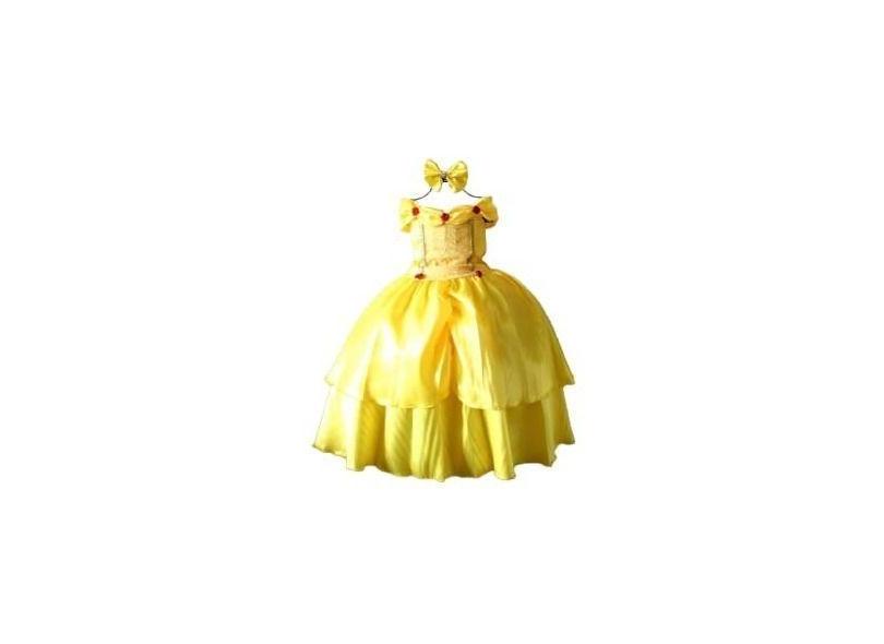 Vestido Festa Fantasia Princesa Bela Luxo Infantil E Tiara - festa lux