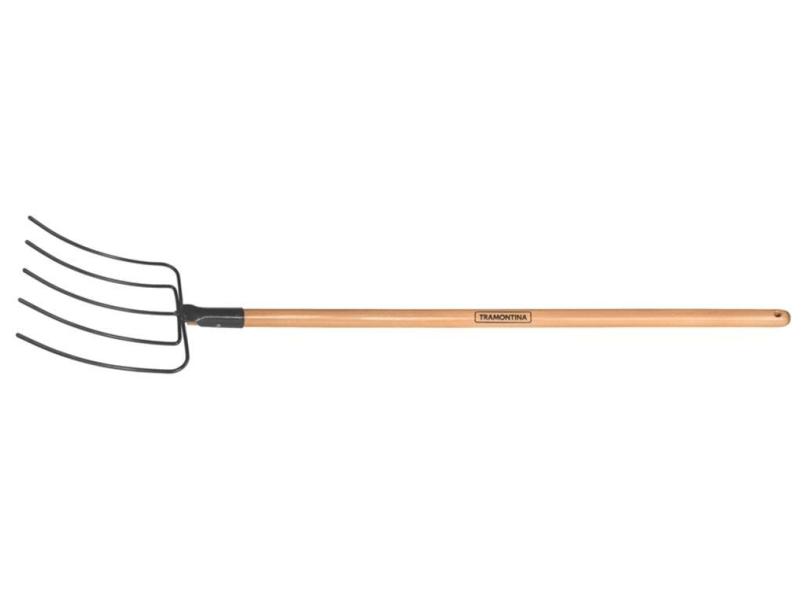 Forcado Metalico De Arame 5 Dentes Cabo De Madeira De 120 Cm Tramontina