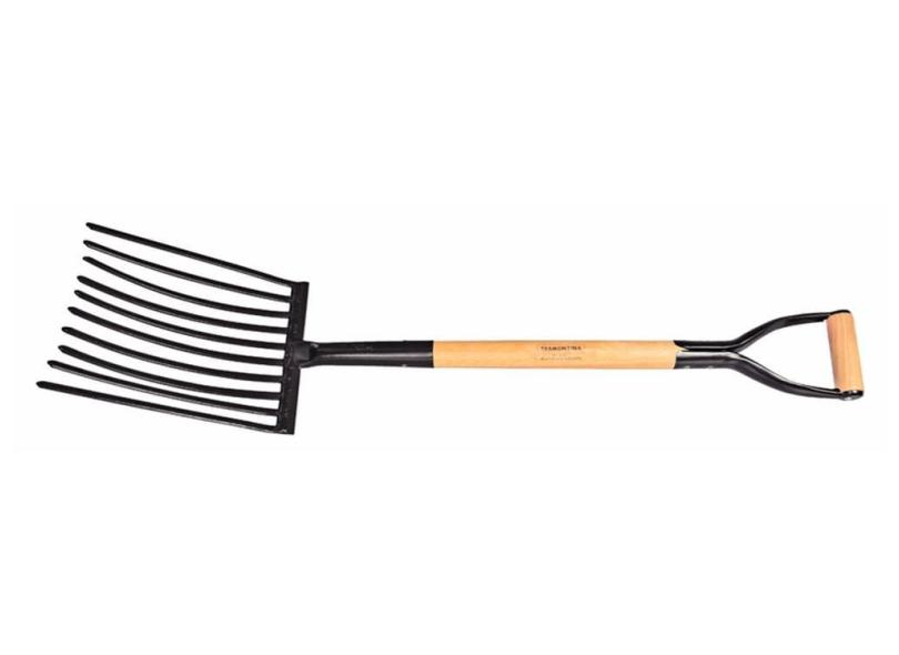Forcado Metalico Para Cascalho 10 Dentes Cabo De Madeira 74 Cm Empunhadura Metalica Tramontina