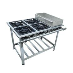 Fogão Industrial 4 bocas 40x40 com Banho Maria Luxo Aço Inox Metalmaq