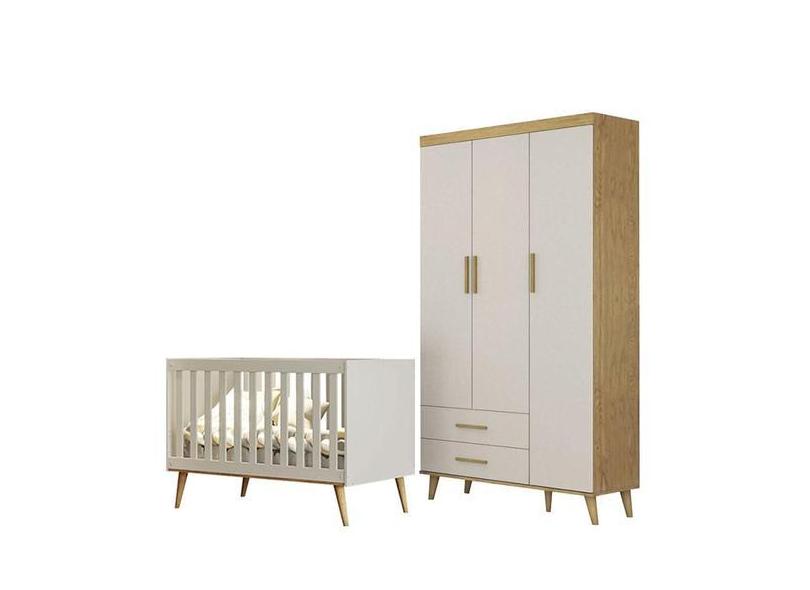 Berço Americano E Guarda Roupa Infantil Ludmila Off White Bétula - Car