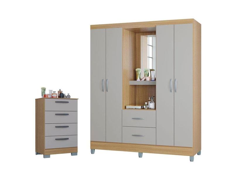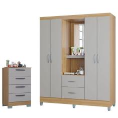 Cômoda 867 4 Gavetas com Guarda Roupa Solteiro Córdoba 4 Portas Damasco Off White - Poquema