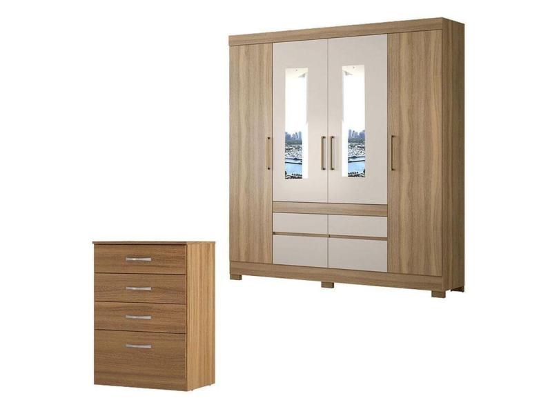 Cômoda Astral E Guarda Roupa Casal Bilbao Amêndola Off White Com Espelho - Demóbile