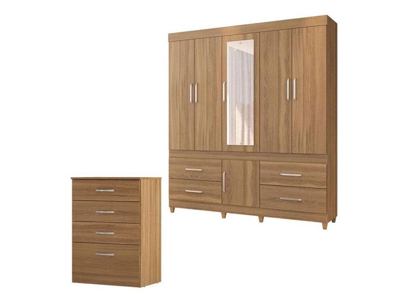Cômoda Astral E Guarda Roupa Casal Guarujá Amêndola Touch - Demóbile