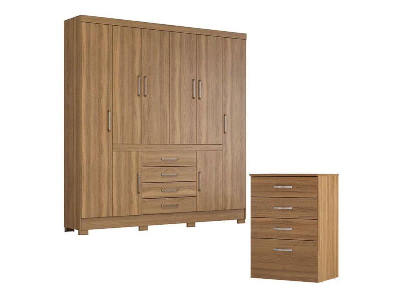 Cômoda Astral e Guarda Roupa Casal New Realce Amêndola Touch - Demóbile