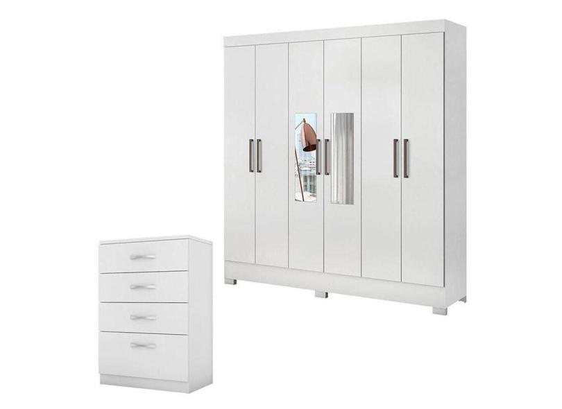 Cômoda Astral e Guarda Roupa Casal Prático Branco com Espelho - Demóbile