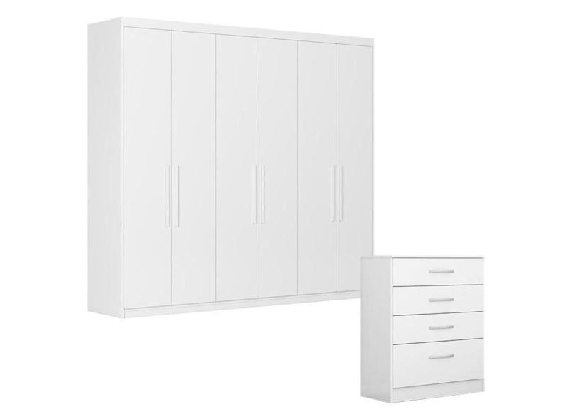Cômoda Astral e Guarda Roupa Casal Venice 62480 Branco Brilho - Demóbile