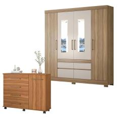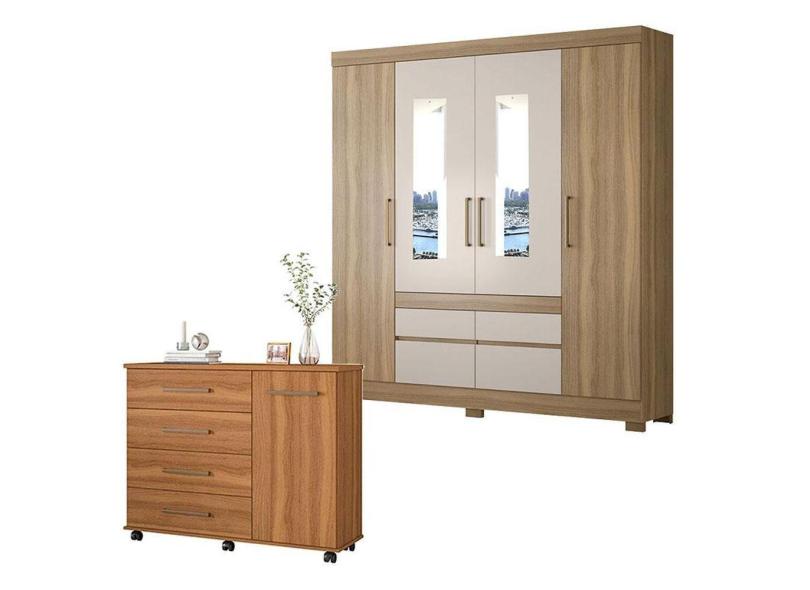 Cômoda Flora E Guarda Roupa Casal Bilbao Amêndola Off White Com Espelho - Demóbile
