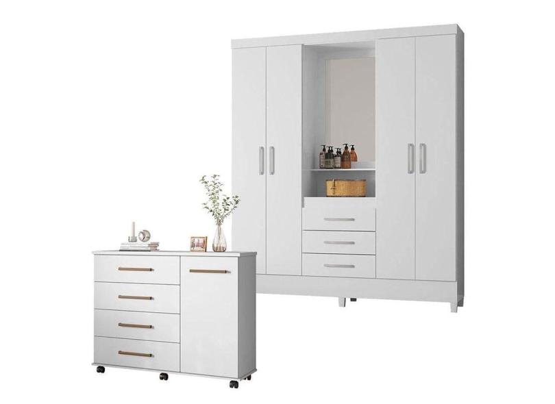 Cômoda Flora E Guarda Roupa Casal Capelinha Pérsia Branco Flex - Demóbile