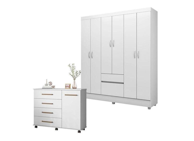Cômoda Flora E Guarda Roupa Casal Flash 2 Branco Flex - Demóbile