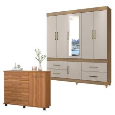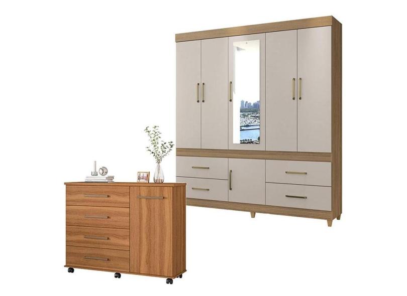 Cômoda Flora e Guarda Roupa Casal Guarujá Amêndola Off White - Demóbile