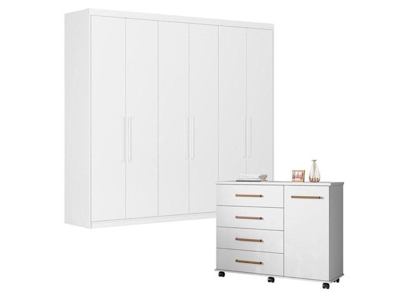 Cômoda Flora e Guarda Roupa Casal Venice 62480 Branco Brilho - Demóbile