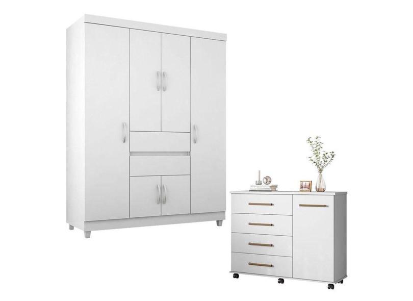 Cômoda Flora e Guarda Roupa Solteiro Ecom 2 Branco Flex - Demóbile