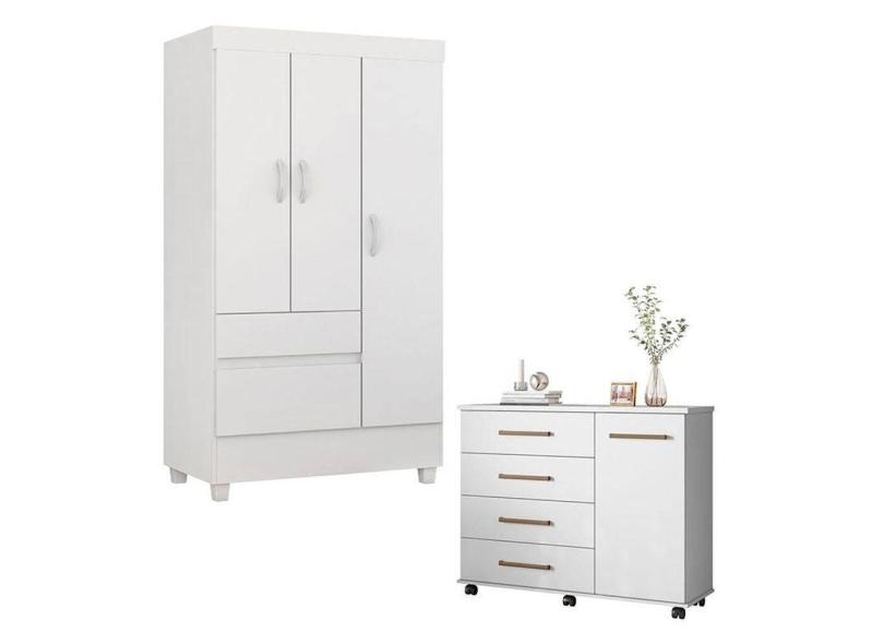 Cômoda Flora e Guarda Roupa Solteiro Wind Branco Flex - Demóbile