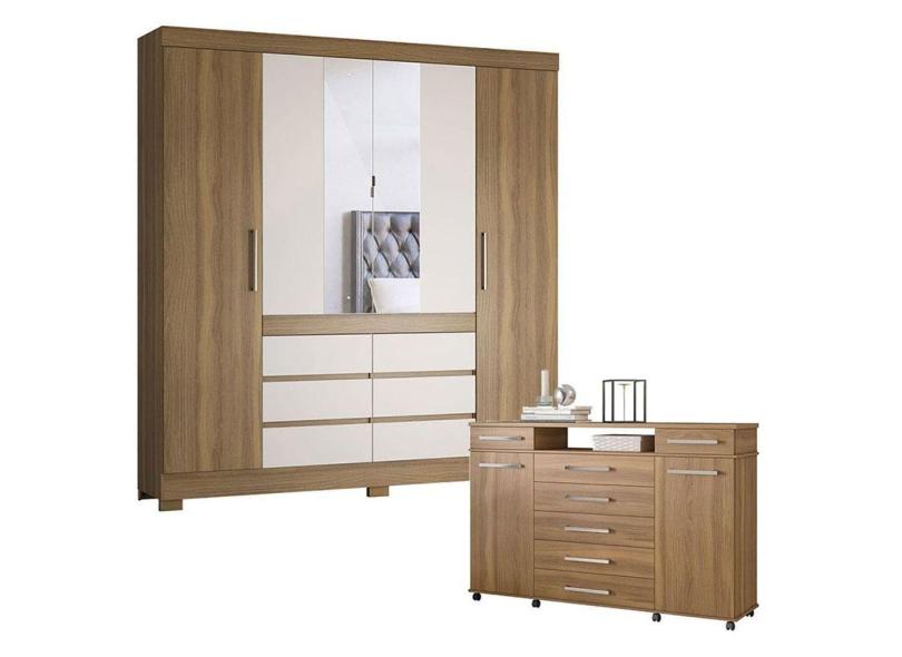 Cômoda London e Guarda Roupa Casal Cádis Amêndola Off White - Demóbile