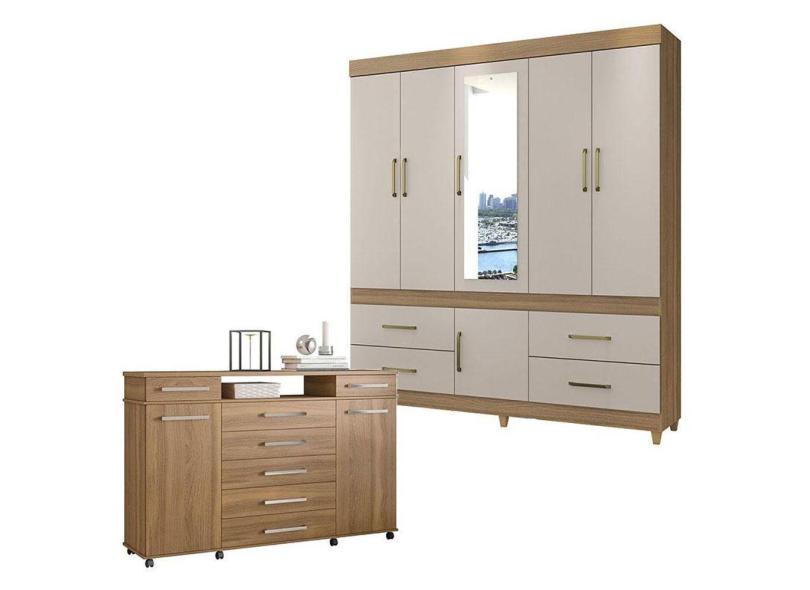Cômoda London e Guarda Roupa Casal Guarujá Amêndola Off White - Demóbile