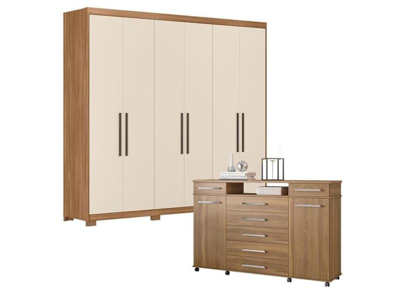 Cômoda London e Guarda Roupa Casal Venice 62480PE Amendola Touch Off White com Pés - Demóbile