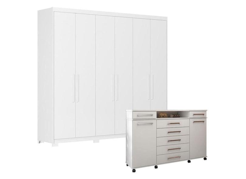 Cômoda London e Guarda Roupa Casal Venice 62480PE Branco Brilho - Demóbile