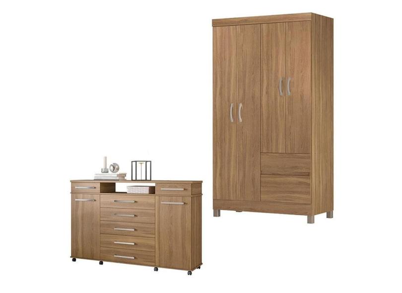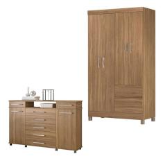 Cômoda London e Guarda Roupa Solteiro Lótus Amêndola Touch - Demóbile
