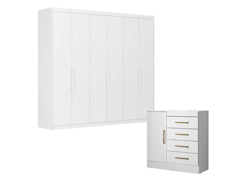 Cômoda Montevideu e Guarda Roupa Casal Venice 62080 Branco Brilho - Demóbile