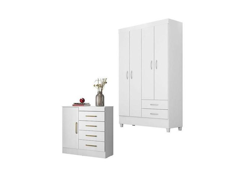 Cômoda Montevidéu E Guarda Roupa Solteiro Astro Branco Flex - Demóbile