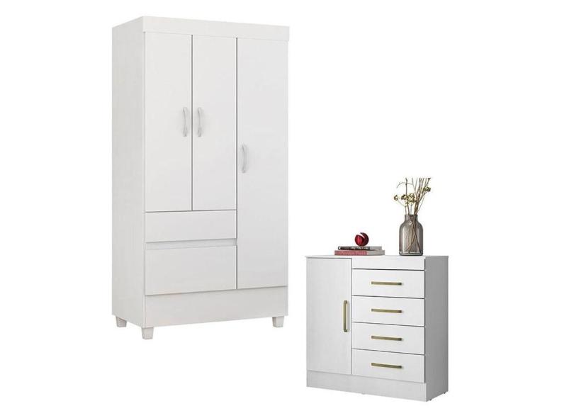 Cômoda Montevidéu e Guarda Roupa Solteiro Wind Branco Flex - Demóbile