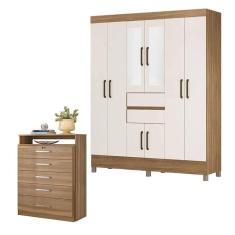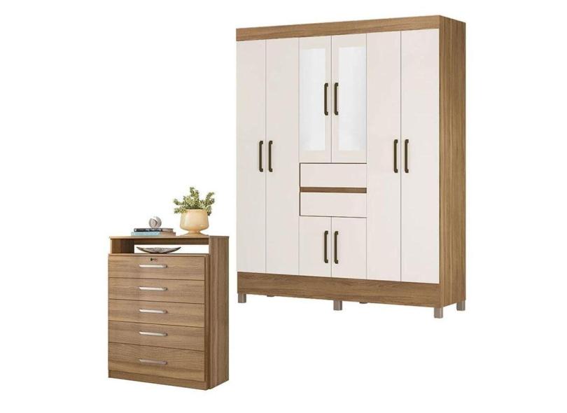 Cômoda Triunfo e Guarda Roupa Casal Munique Amêndola Off White com Espelho - Demóbile