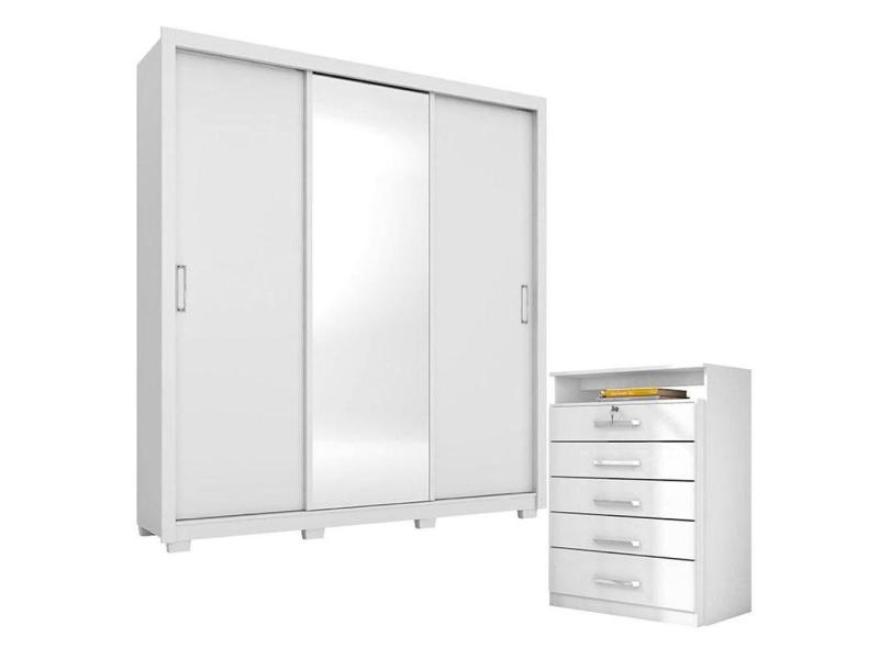 Cômoda Triunfo e Guarda Roupa Casal Residence Branco com Pés - Demóbile