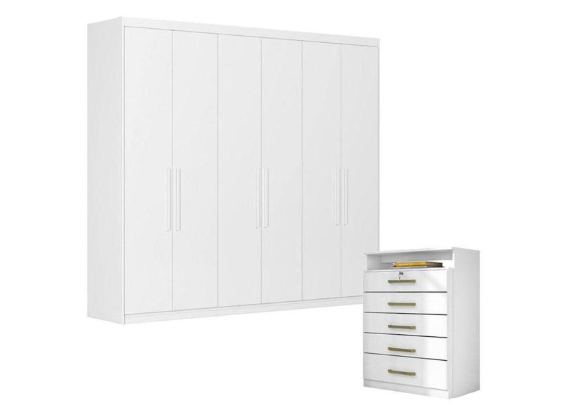 Cômoda Triunfo e Guarda Roupa Casal Venice 62480 Branco Brilho - Demóbile
