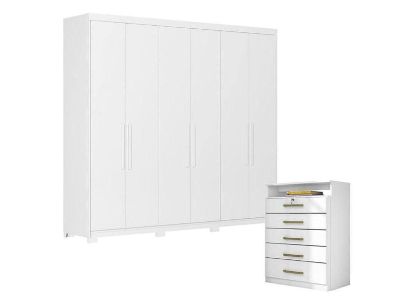 Cômoda Triunfo e Guarda Roupa Casal Venice 62580PE Branco Brilho com Pés - Demóbile