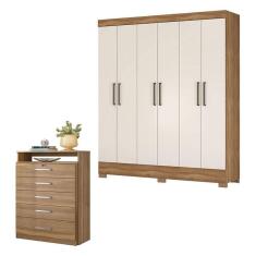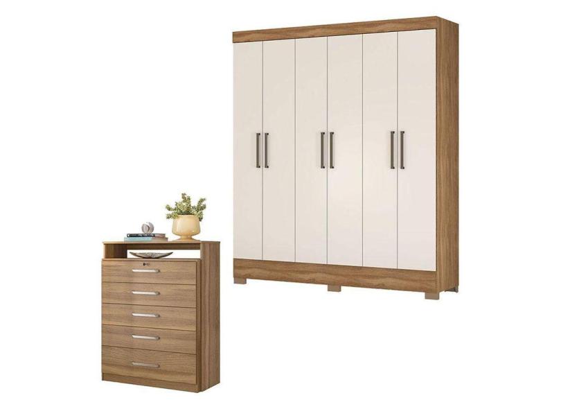Cômoda Triunfo e Guarda Roupa Casal Verso Amêndola Off White - Demóbile