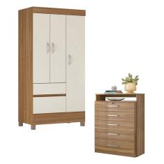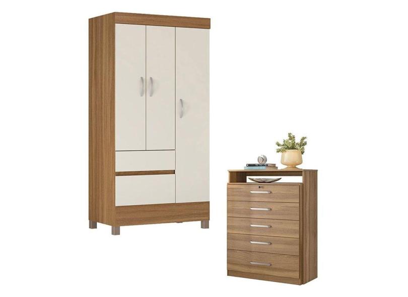 Cômoda Triunfo e Guarda Roupa Solteiro Wind Amêndola Off White - Demóbile
