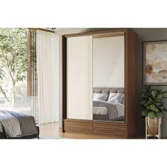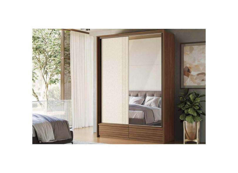 Guarda Roupa 2 Portas de Correr (1 c/ Espelho) e 4 Gavetas Democrata Jatobá/Areia - Santos Andirá