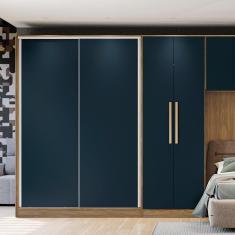 Guarda-Roupa 2 Portas de Correr 2 Gavetas Kappesberg Adapt Nogueira/Azul Profundo 158cm