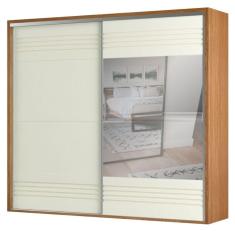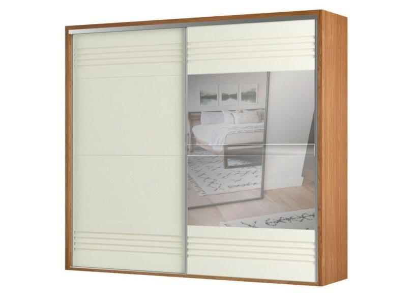 Guarda-Roupa 2 Portas de Correr 4 Gavetas 6 Prateleiras Espelhado Ripado Freijó/Off White - Dalla Costa