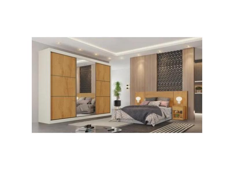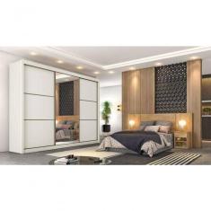 Guarda Roupa 3 Portas com 1 Espelho off white peroba off white 6 Gavetas Bragança Móveis Europa