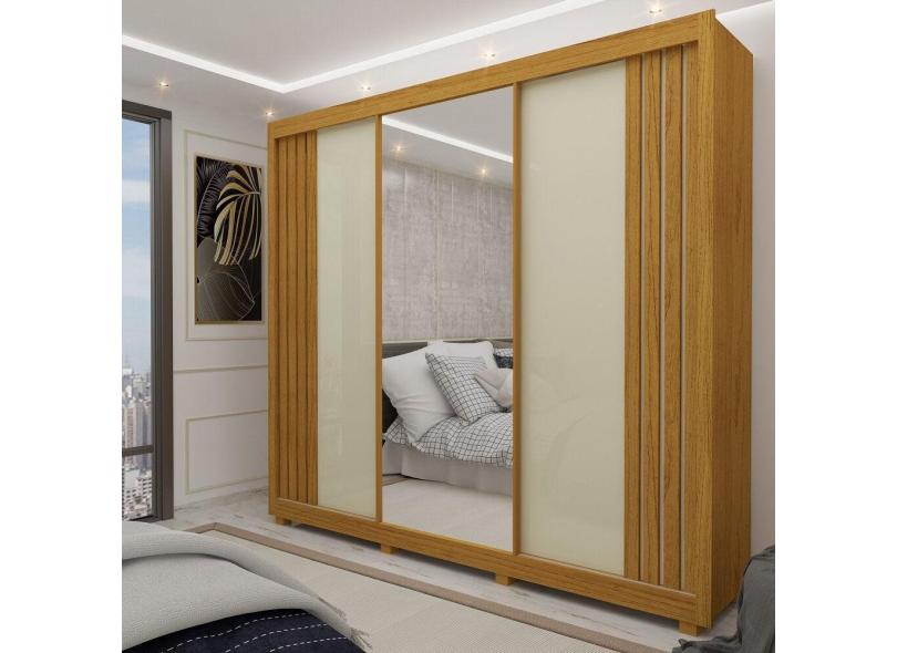 Guarda Roupa 3 Portas Com Pés Santorini Ripado Naturale Off White - Gelius