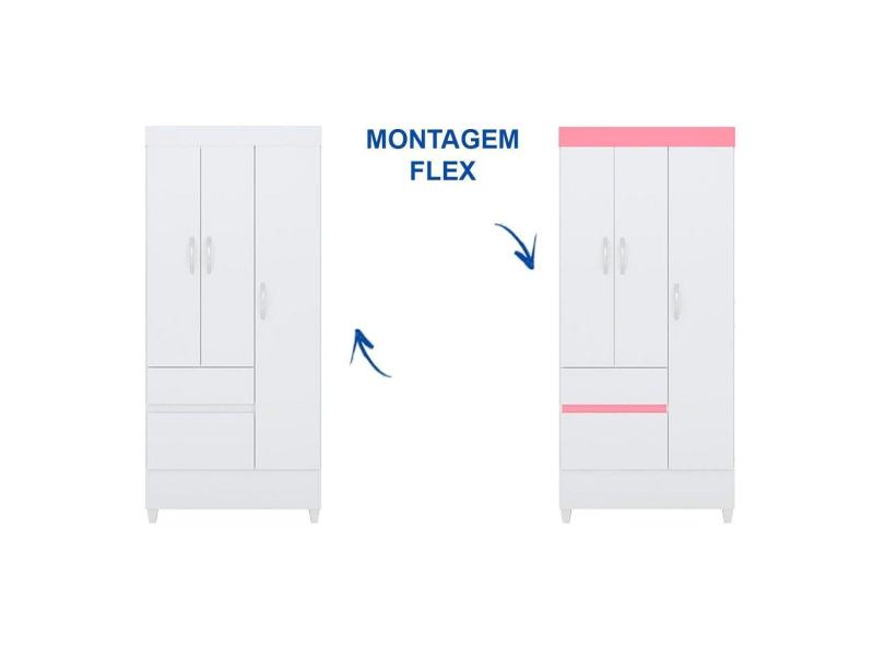 Guarda Roupa 3 Portas E 2 Gavetas Wind Branco Rosa Demobile