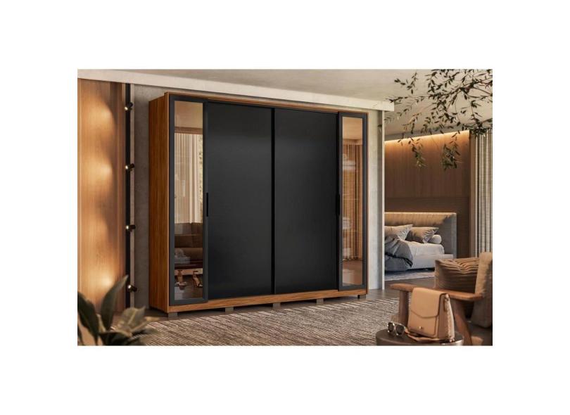 Guarda Roupa 4 Portas de Correr e 4 Gavetas c/ 2 Vidros Reflecta e Pés Laredo Flex Nogueira/Nogueira ou Preto - Demóbile