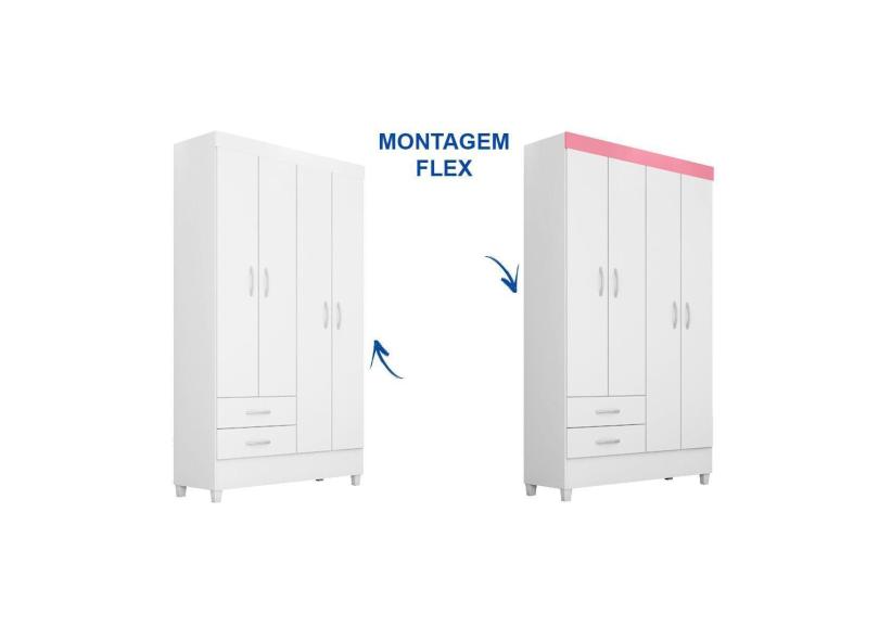 Guarda Roupa 4 Portas E 2 Gavetas Astro Branco Rosa Demobile