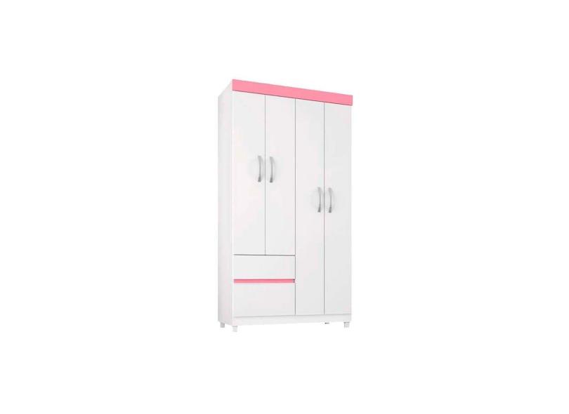 Guarda Roupa 4 Portas E 2 Gavetas Lotus Flex Branco Rosa Demobile