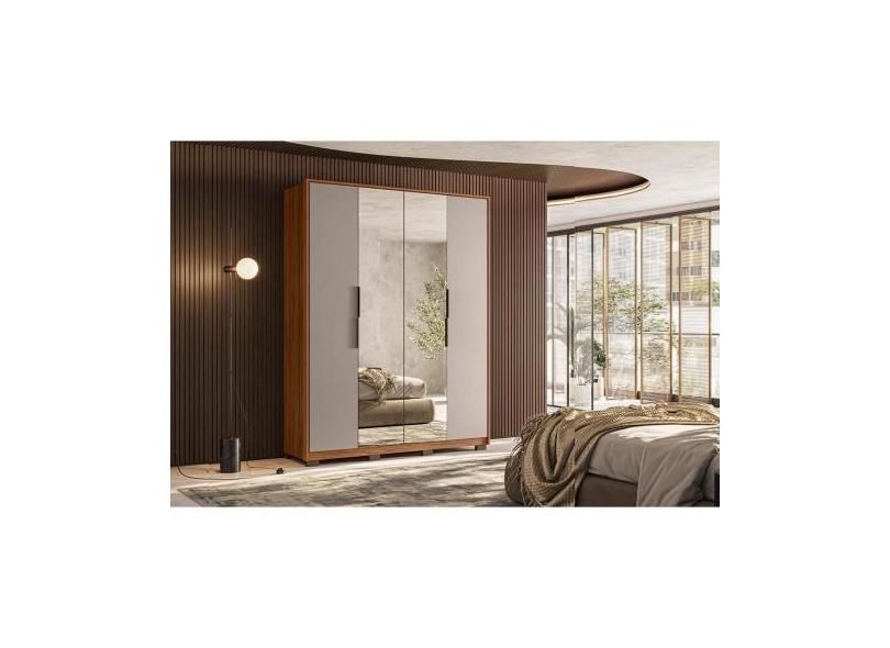 Guarda Roupa 4 Portas e 3 Gavetas c/ 2 Espelhos e Pés Attore Nogueira