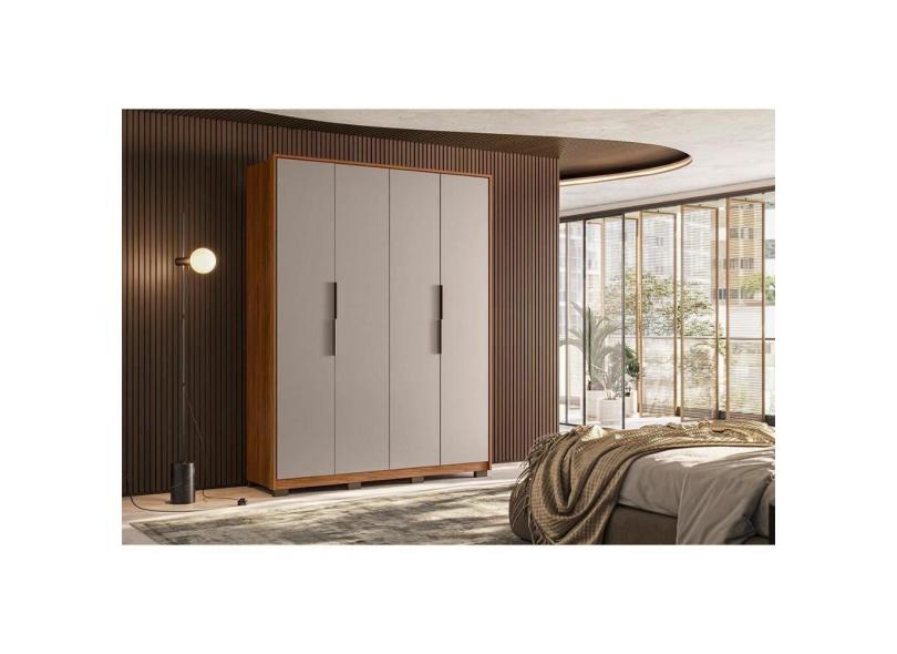 Guarda Roupa 4 Portas e 3 Gavetas c/ Pés Attore Nogueira/Nude - Demóbile