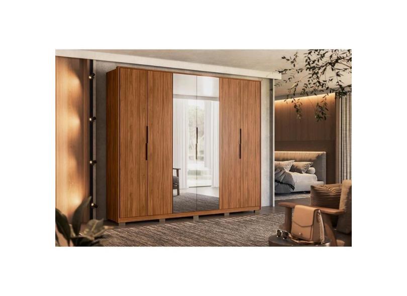 Guarda Roupa 6 Portas (2 c/ Espelho) e 6 Gavetas c/ Pés Atrice Nogueira - Demóbile