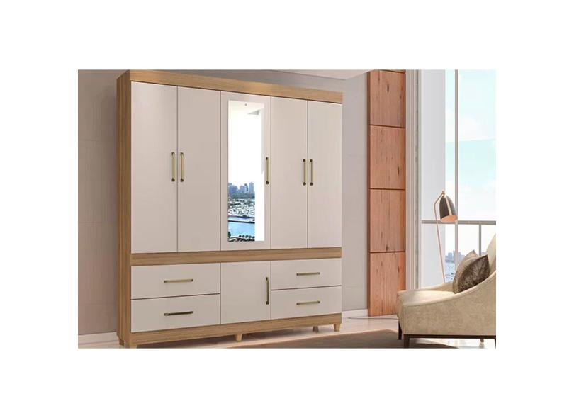 Guarda Roupa 6 Portas E 4 Gavetas C Espelho Guaruja Amendola Off White Demobile