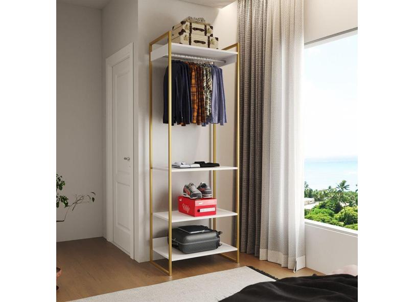 Guarda Roupa Aberto Industrial Modulado Solteiro Branco Cabideiro Base Dourada