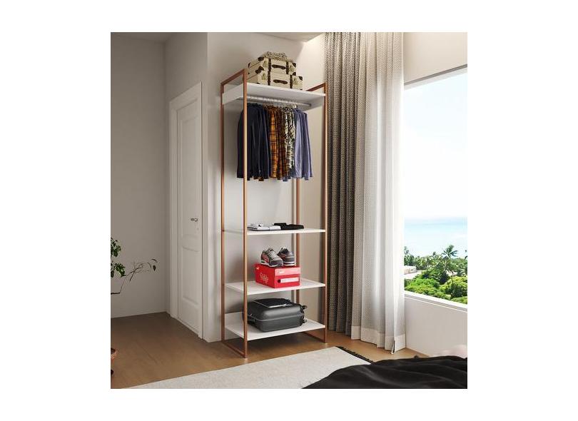 Guarda Roupa Aberto Industrial Modulado Solteiro Branco Cabideiro Base